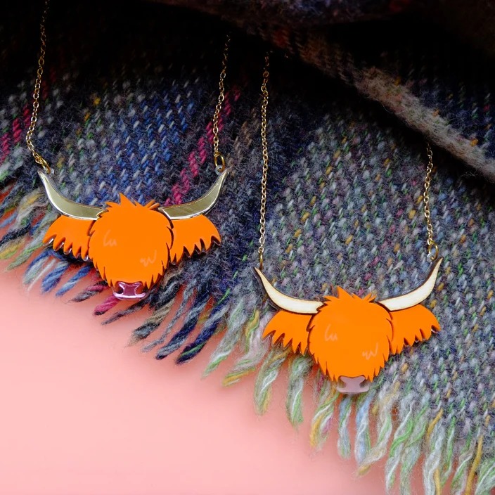 I spoke with Mhairi Mackenzie, the founder and creative force behind Bonnie Bling. I asked Mhairi to tell me about her business, what inspires her? “Bonnie Bling began in 2012 and grew from my love of our Scottish humour and culture, mixed with strong graphic design elements. Within my first two years of business the jewellery designs were being worn by lots of different celebrities!” This must have been so exciting, Mhairi said “the designs were very punchy and reactive at that time but my style has softened a little over the years. I like to focus on the attachment people have with things, the iconic symbols that have become woven into how others perceive us, but I like to add a twist to my Scottish icons.”