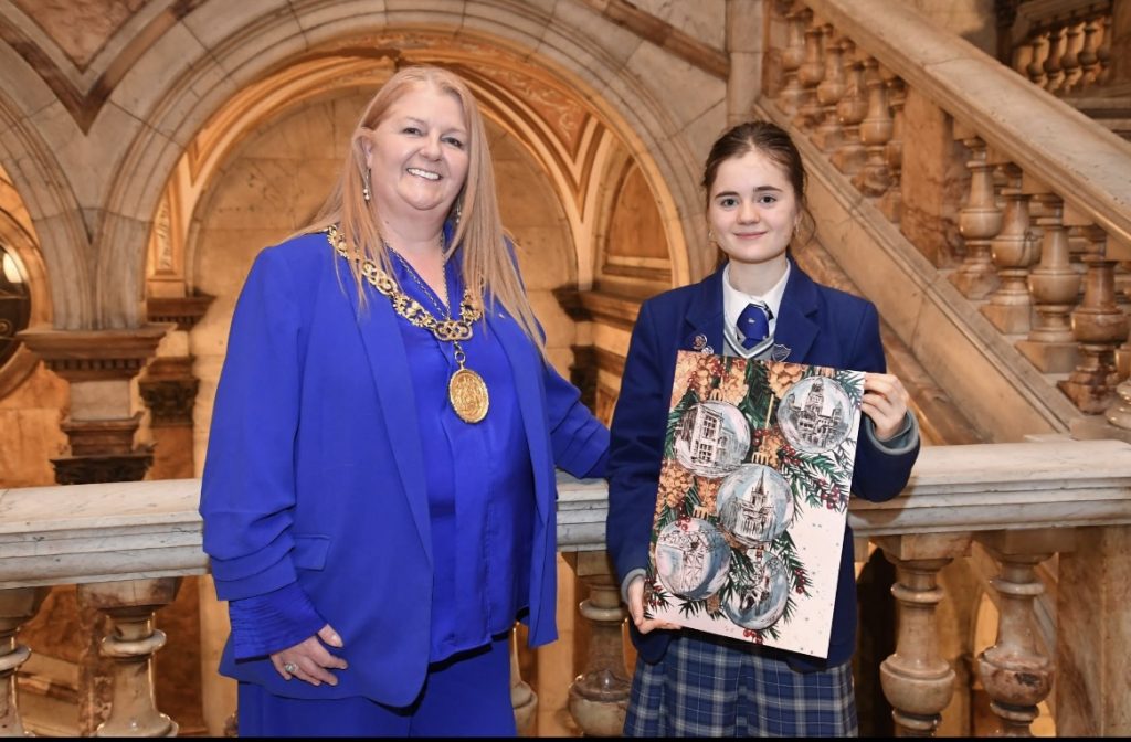 Honor was invited for tea with the Lord Provost and renowned Artist Gerard Burns at the city chambers on the 14th of November. Both The Lord Provost and Gerard Burns had chosen Honor’s card as the winner. She loved the day, and got to see some of Gerard’s work in the City Chambers. With the talent she has, it won’t be long before her own work is gracing the Chambers hallowed halls!