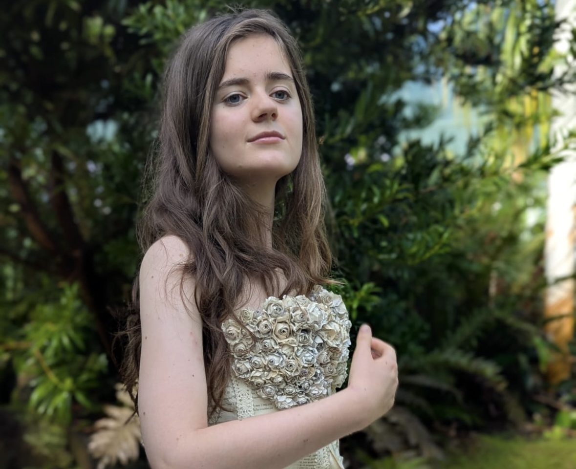 The school’s belief in Honor is key to her success and indeed her confidence. Having been unwell as a toddler, Honor has found some areas of her learning difficult. She has dyslexia, dyscalculia and short term memory problems. Yet in her innovation and art class, she excels. Recently Honor created a ballgown styled with hundreds of tiny roses, each taking over 20 minutes to make and all from the pages of books. Modelled by Honor in the Kibble Palace, her dress looks like a piece of Alexander McQueen couture.