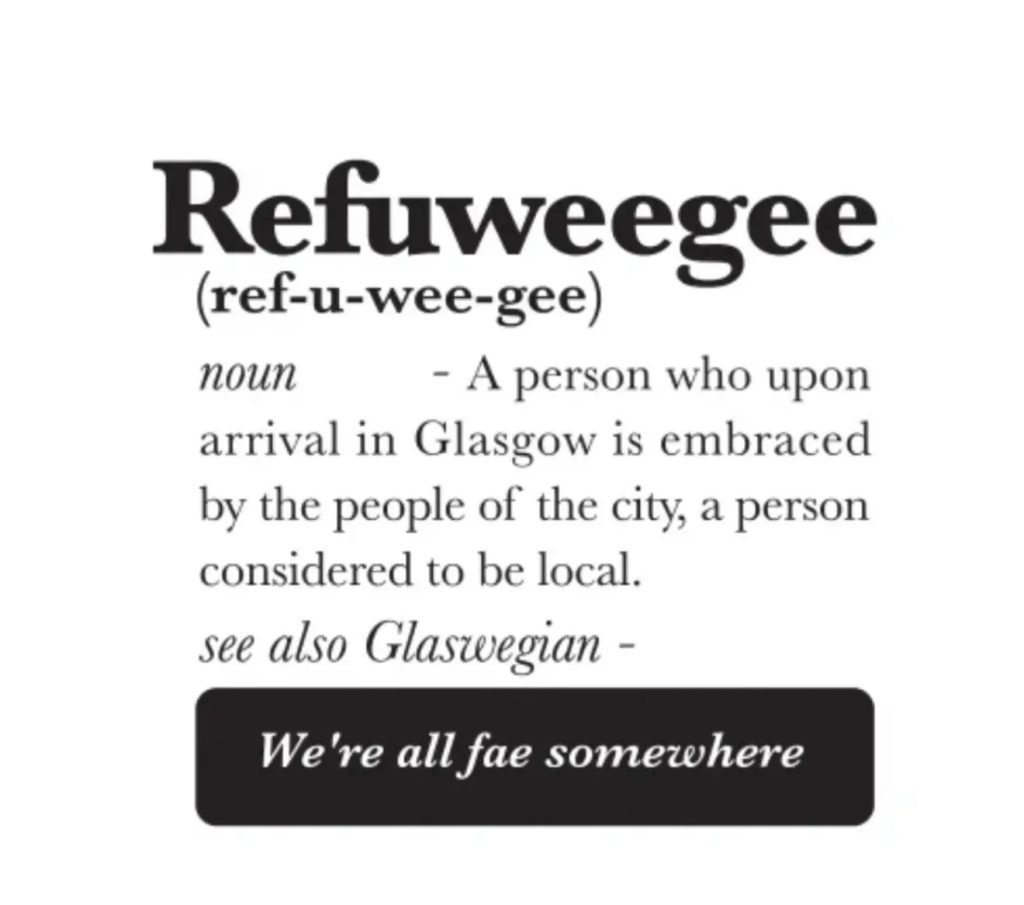 After speaking with Selina, it’s impossible not to feel in awe of her and her passion and drive to make a difference. It’s also impossible not to feel extremely proud of all that Refuweegee represents. The definition of a refuweegee according to the charity is ‘A person who upon arrival in Glasgow is embraced by the people of the city, a person considered to be local’.